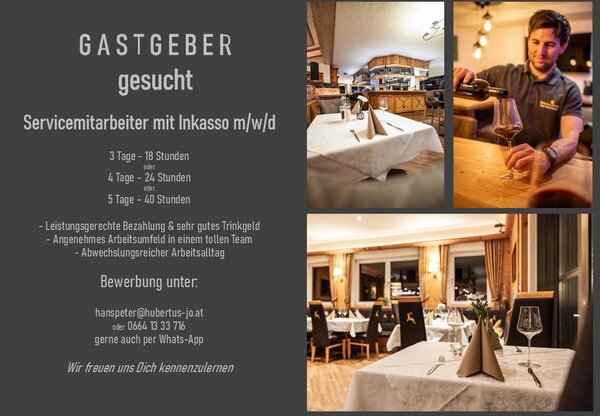 Bewerbung unter hanspeter@huberts-jo.at oder 0664 1333716