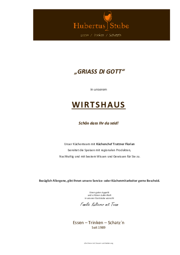 Guad essen und trinken im Wirtshaus Hubertusstube!